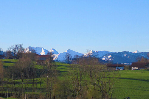 Und die Alpen - öffnen sich von den Hügeln rund um Betzigau zu einem überwältigenden Panorama.